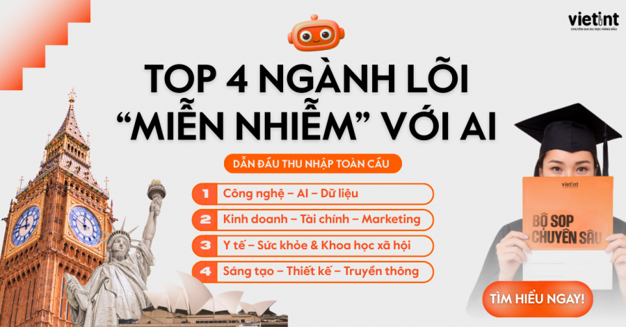 AI đang tái cấu trúc thị trường lao động toàn cầu. Nhiều công việc truyền thống dần biến mất, trong khi những ngành có giá trị cốt lõi cao, khó thay thế và biết tận dụng AI lại tăng trưởng nhanh hơn, thu nhập cao hơn và ổn định hơn. Với du học sinh, việc chọn đúng ngành học trong thời đại AI không chỉ quyết định cơ hội việc làm sau tốt nghiệp mà còn ảnh hưởng trực tiếp đến khả năng ở lại làm việc và định cư lâu dài.